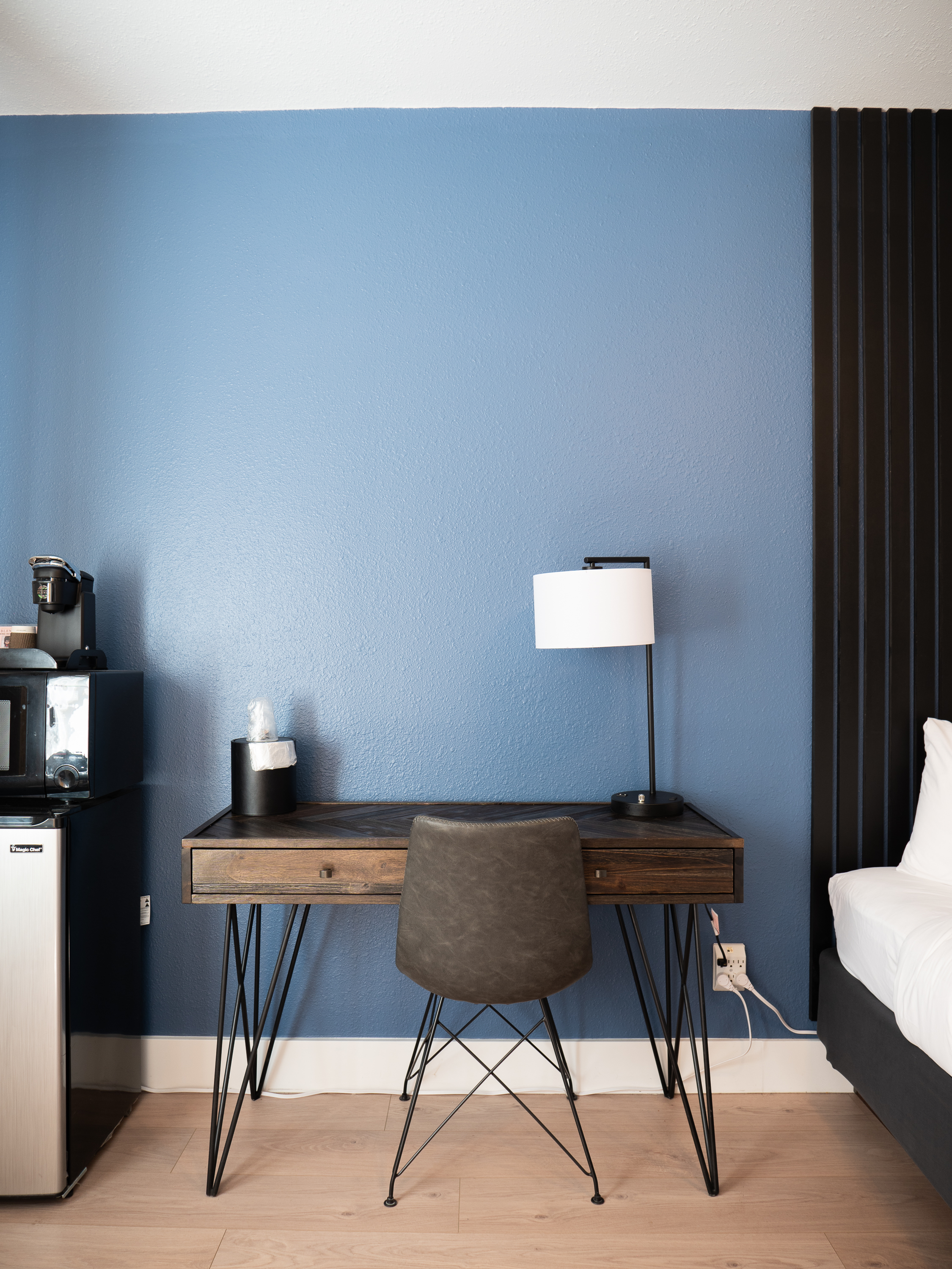 All of our king rooms are located on the 2nd floor. They provide ample space to bring your bikes inside. Gig speed WiFi, a work desk or cafe table and cable TV are featured in this air-conditioned room. A microwave, a small refrigerator and a private bathroom are also included. The second floor is accessed via stairway only- no elevator on site.